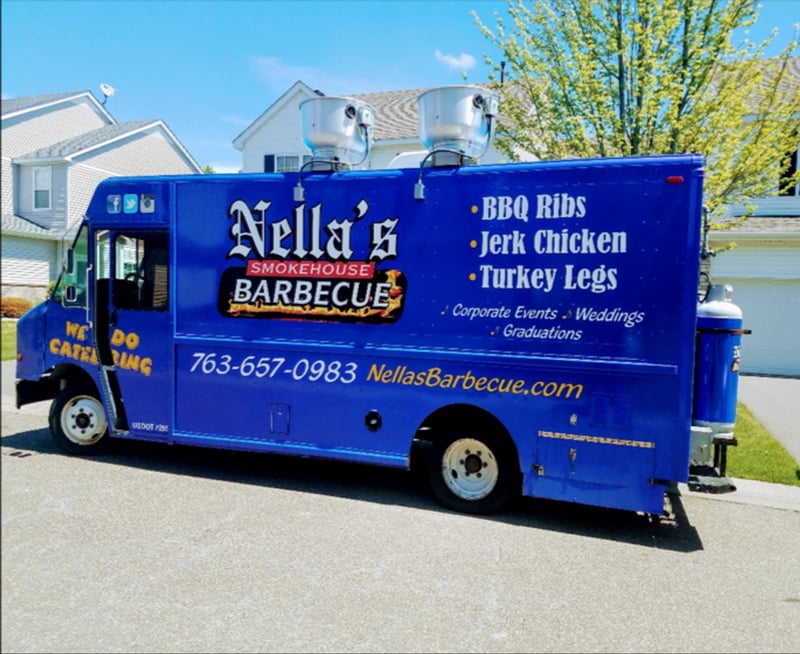 Nellas Smokehouse Barbecue is a staple in the Minneapolis food truck scene, celebrated for its rich, smoky flavors and hearty portions. Owned and operated by a passionate team, this food truck serves up classic barbecue dishes that include Pulled Pork Sandwiches, Turkey Legs, Jerk Chicken, and Ribs. Each meal comes with a choice of sides like Mac and Cheese, Rice and Beans, Coleslaw, and seasoned fries, making it a complete Southern-style feast.