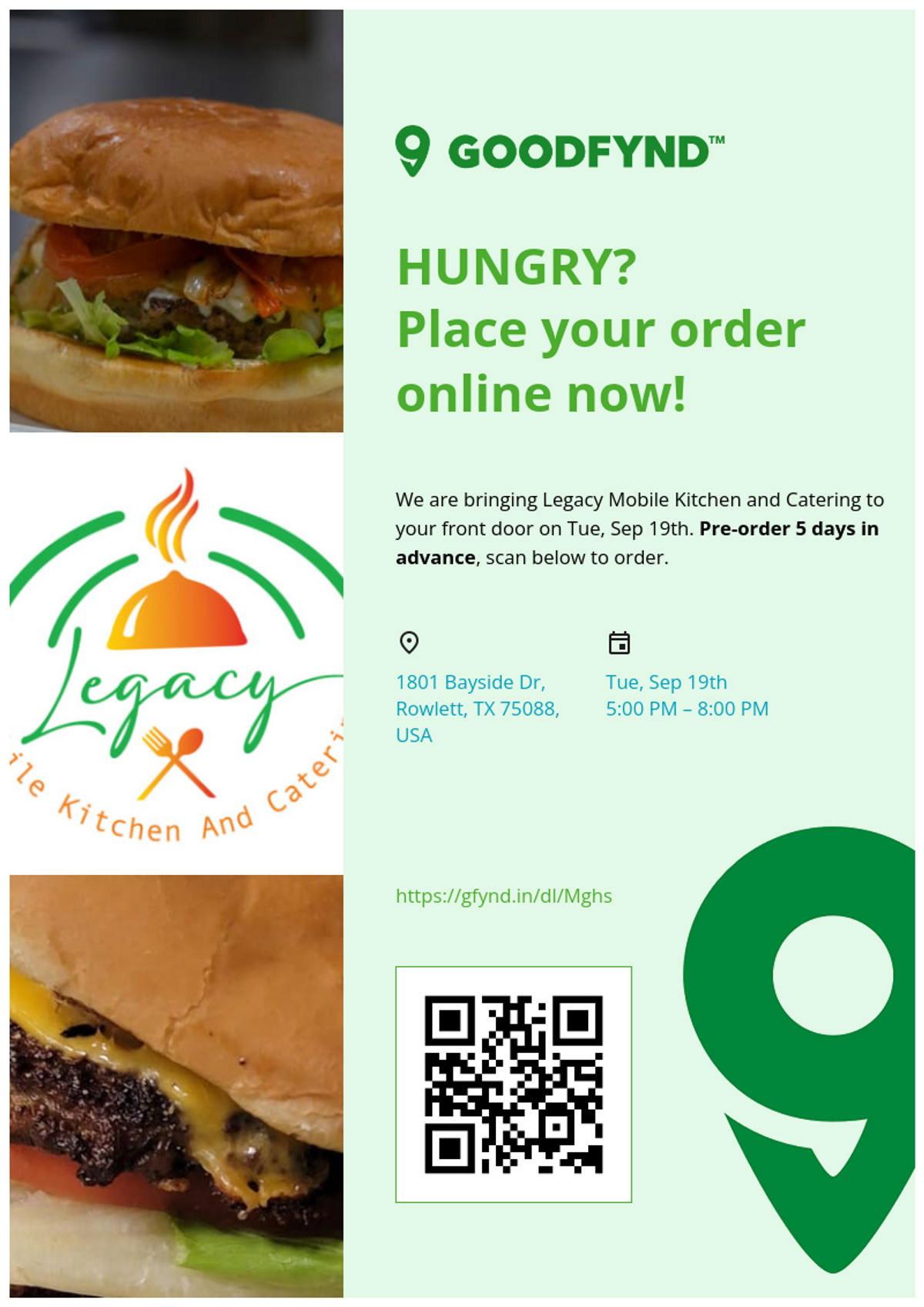 Legacy Mobile Kitchen and Catering serves Louisiana-inspired dishes in Dallas, Texas. Find their schedule, menu, and book them for your next event on BiteBase.