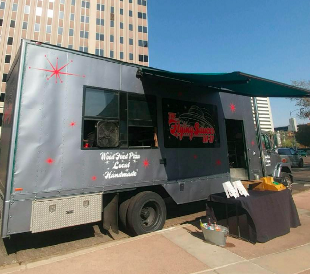 The Flying Saucer brings handcrafted pizza to the streets of phoenix, Arizona. Check availability and book through BiteBase.