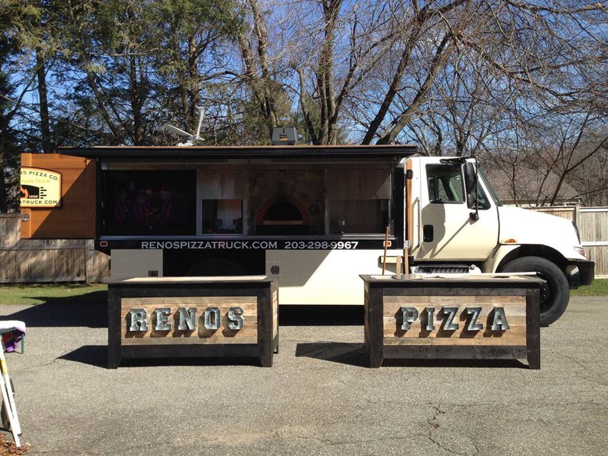 Reno's Pizza Truck serves handcrafted pizza in new-haven, Connecticut. Find their schedule, menu, and book them for your next event on BiteBase.