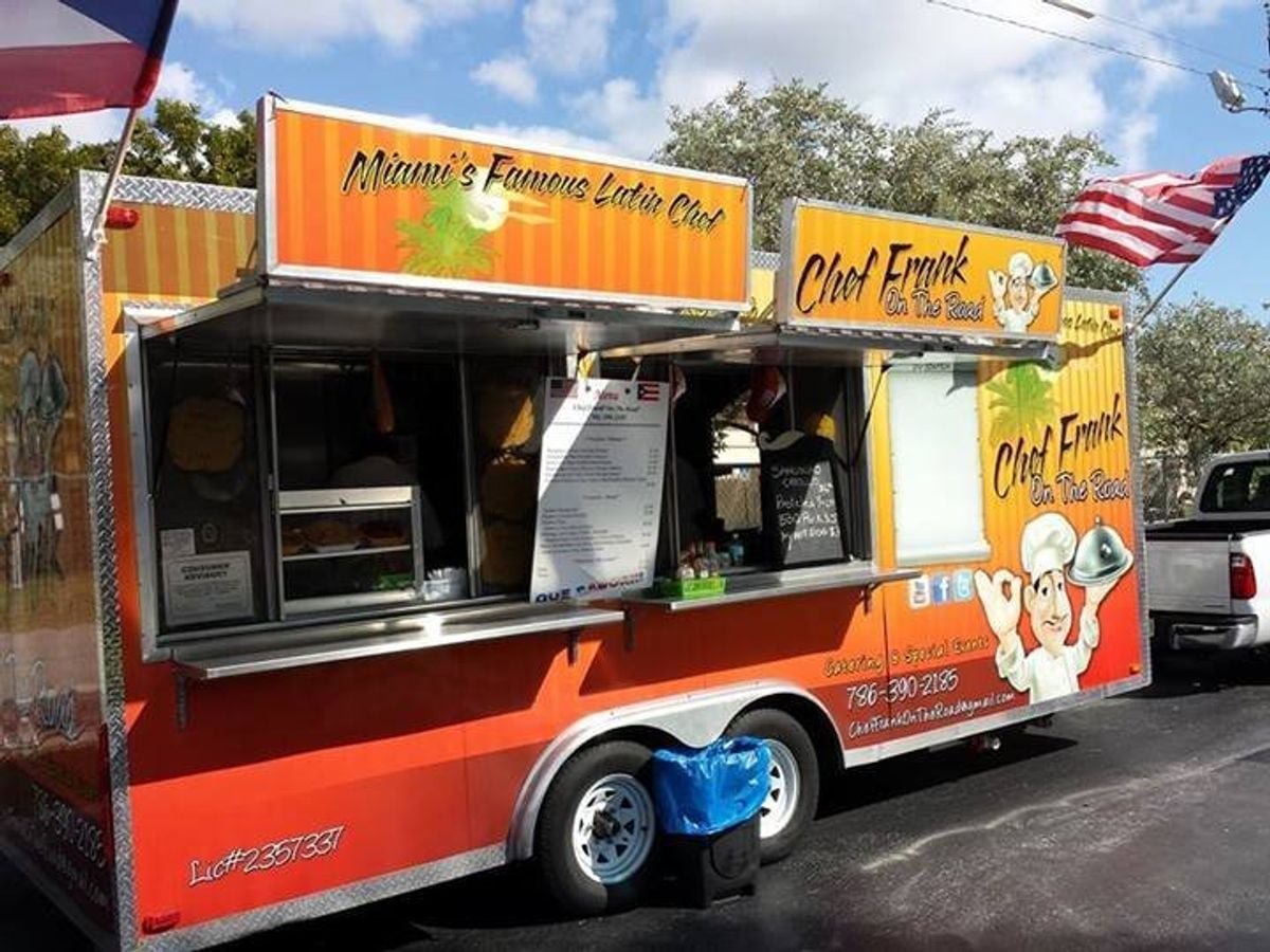 Chef Frank on the Road is a delicious trailer serving up Latin food to the Miami streets. Offering Bacalaitos, Chicharones, Pinchos, and much, much more, this truck won't disappoint as long as you'...