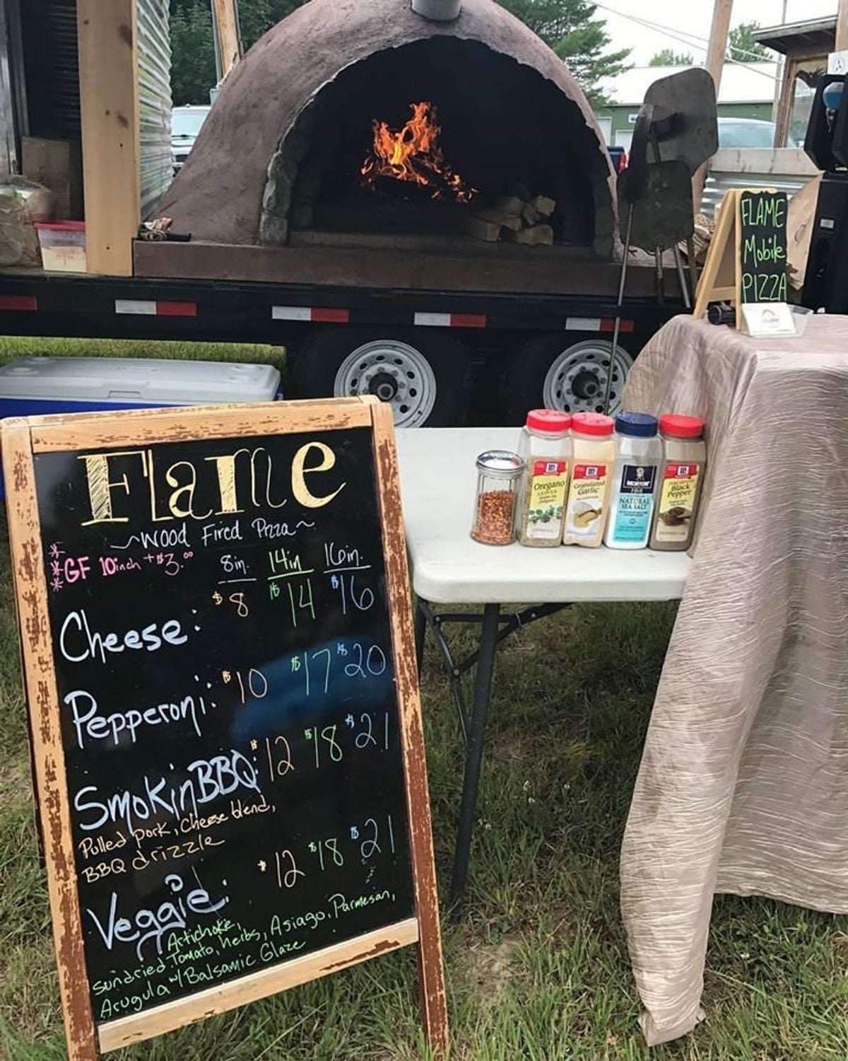 Dig into the finest and freshest pizza in New Hampshire, with Flame Mobile Pizza Oven.